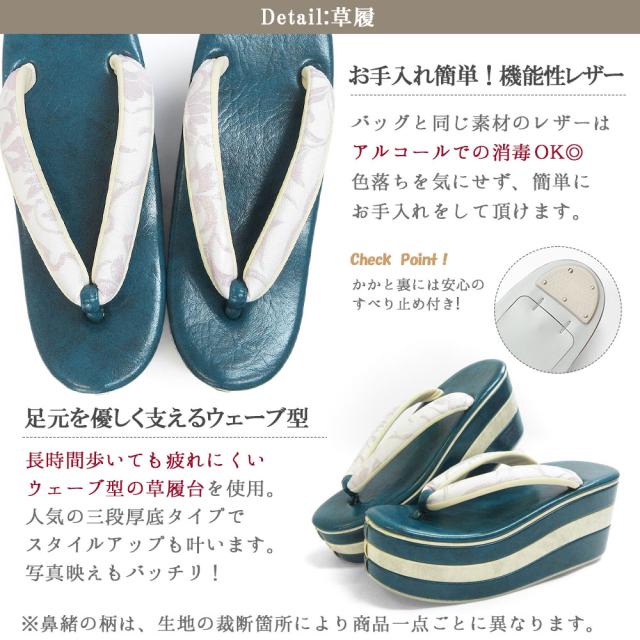 スタイルアップに欠かせない厚底草履で、お着物姿をより華やかに演出します。
