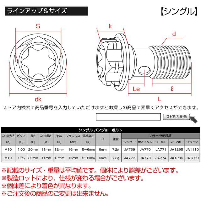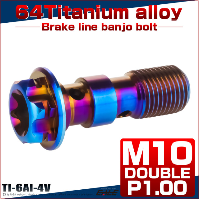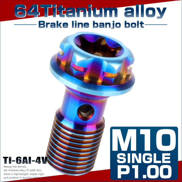 64チタン製 バンジョーボルト ブレーキライン M10 P1.25 トルクス穴 デザインボルト レインボー 虹色 JA1296