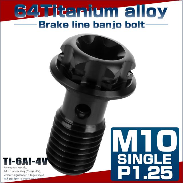 64チタン製 バンジョーボルト ブレーキライン M10 P1.25 トルクス穴 デザインボルト ブラック JA1299