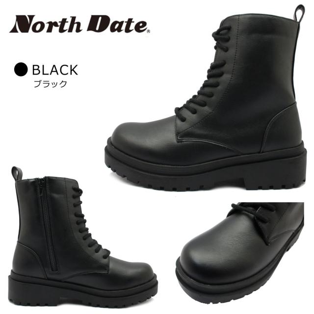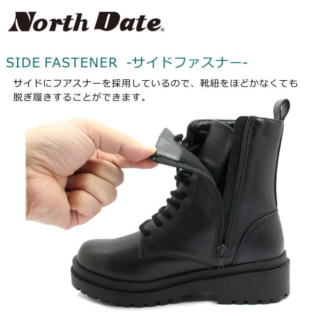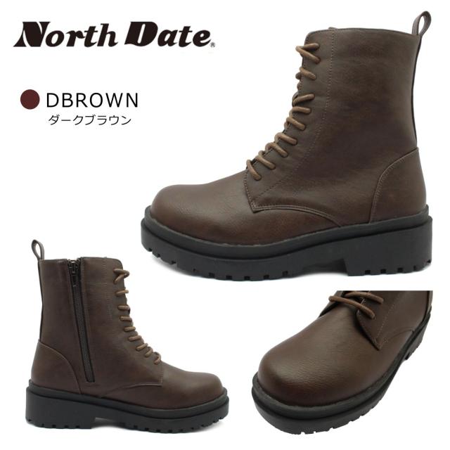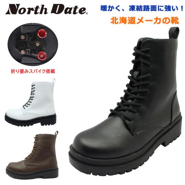 ノースデイト レディース スパイク スノーブーツ 防滑 防寒 7202 紐 内側ファスナー ショートブーツ NORTH DATE ダテハキ