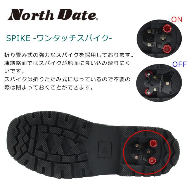 | ノースデイト レディース スパイク スノーブーツ 防滑 防寒 7202 紐 内側ファスナー ショートブーツ NORTH DATE ダテハキ |