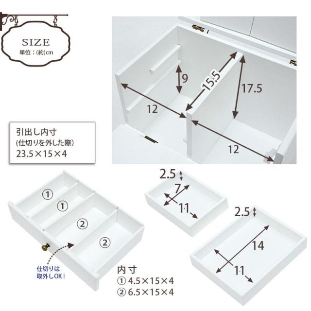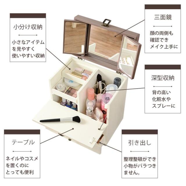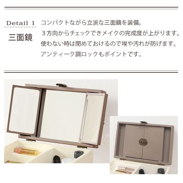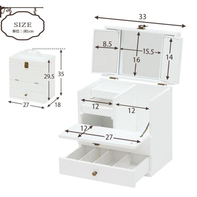メイクボックス コスメボックス 三面鏡 大容量 卓上 鏡 木製 小さめ 持ち運び 引き出し ミラー 小型 コンパクト 姫 白 アンティーク おしゃれ バニティ