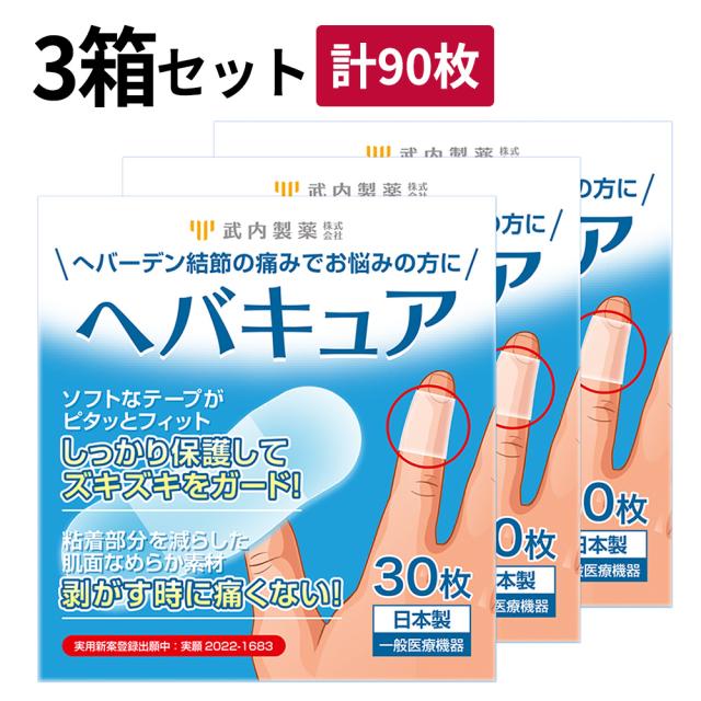 ヘバキュア 指関節 絆創膏 サポーター 3箱セット 90枚入り 一般医療機器 指先 へバーデン結節 テープ ばね指 親指 痛い 武内製薬 使い捨て 指サポーター 手 小指 突き指 ブシャール結節 関節 固定 結節 保護 第一関節 腱鞘炎 指ヘバ 関節サポート ヘバーデン結節サポーター