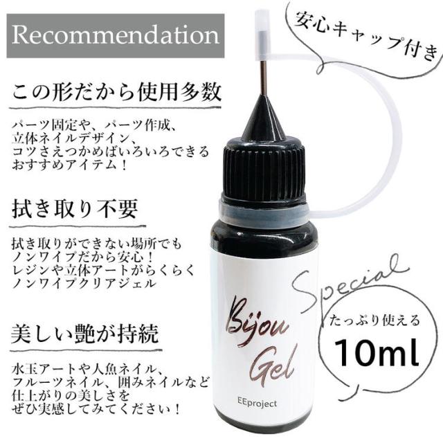 ノンワイプ ビジュージェル 10ml ジェルネイル クリア パーツ ストーン 最新 固定 拭き取り不要 くだものネイル ネイルアート ニュアンスネイル デコ 波ネイル マーメイドネイル 3Dアート アクセサリー ぷっくり おすすめ セルフネイル フットネイル 簡単 初心者
