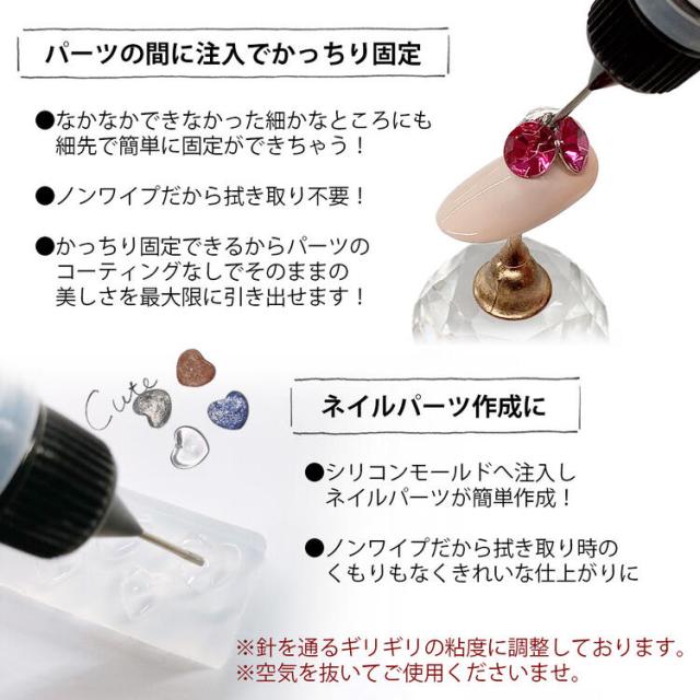 ビジュー ジェル ネイル 透明 パーツ固定 ノーワイプ 立体アート