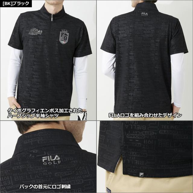 FILAロゴを組み合わせたデザインがエンボス加工されたハーフジップ半袖シャツ+Vネック長袖インナーシャツのお得なセット