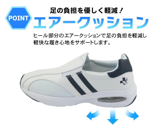 サイドゴア付きで抜き履きがしやすく、医療・介護・オフィス等の現場でアクティブに大活躍。