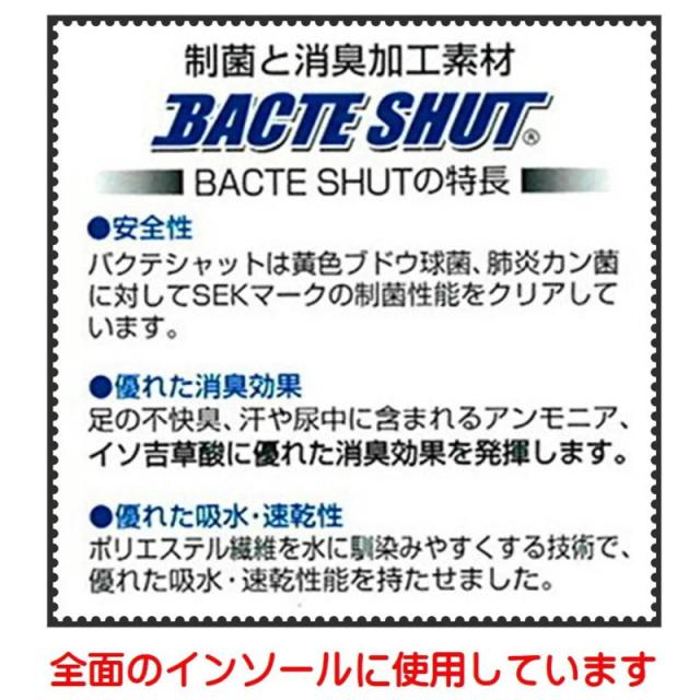 さらに、このカップインソールは日本製の抗菌防臭材(BACTE SHUT)を全面に使用することで、清潔さを保てます。