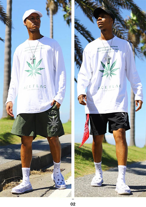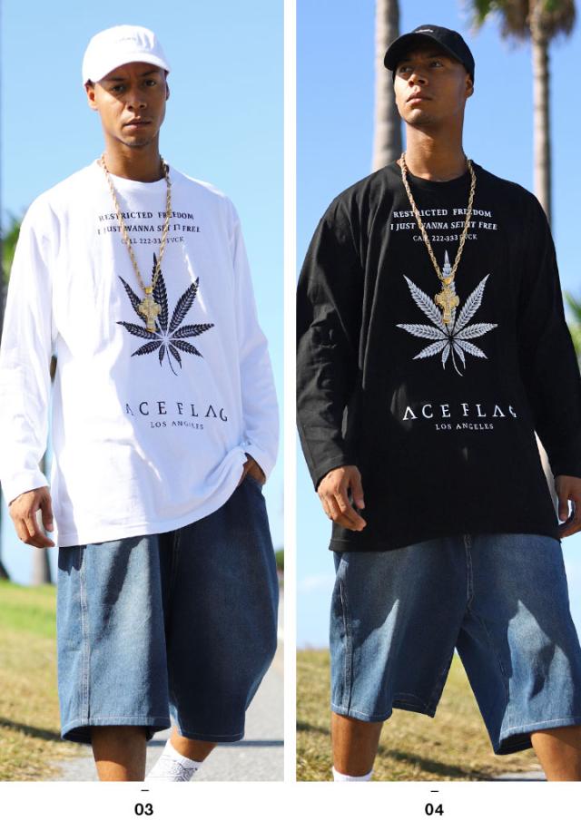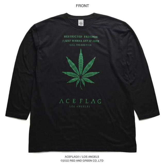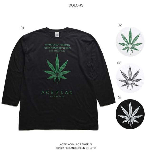 ACEFLAG ロンT メンズ 春秋冬用 全4種 大きいサイズ エースフラッグ Tシャツ 長袖 派手 HEMP 麻 大麻 マリファナ ヘンプ ロゴ チカーノ ローライダー b系 ヒップホップ ファッション ダンス ストリート系 ブランド 服 AF-TL-LT-018
