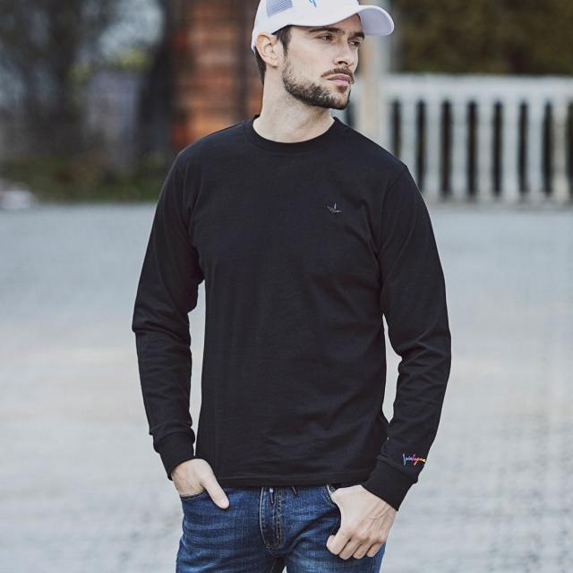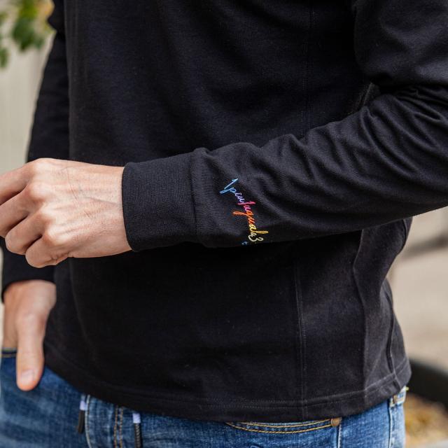 ベーシックな長袖クルーネックTシャツの袖にレインボーカラーのブランドロゴを配した、レインボーシリーズの新作です。レインボーカラーのロゴは小さいながらもきらりと存在感を主張、全体的にはシンプルなのに、しっかりと遊び心ある印象に仕上がりました。