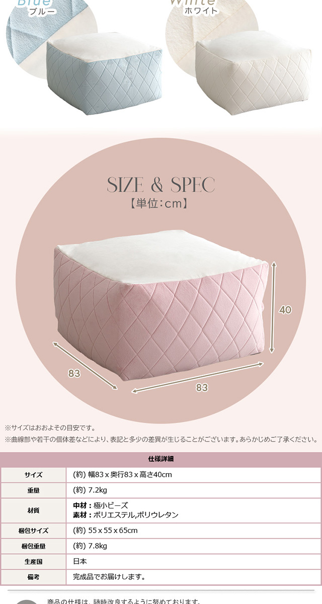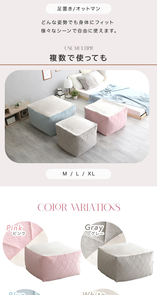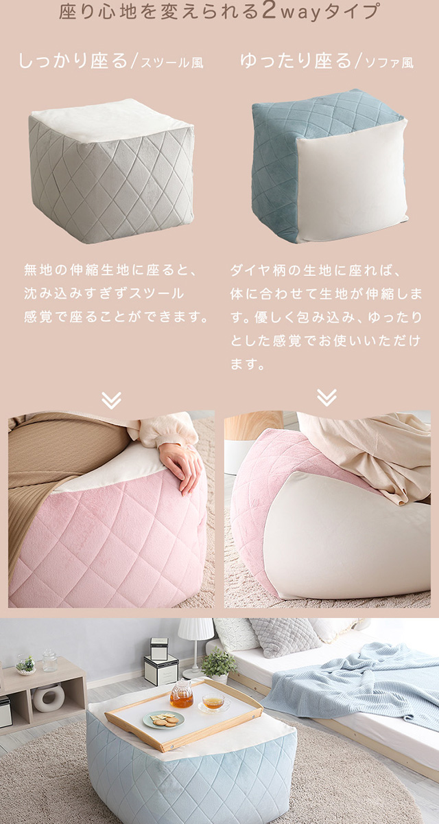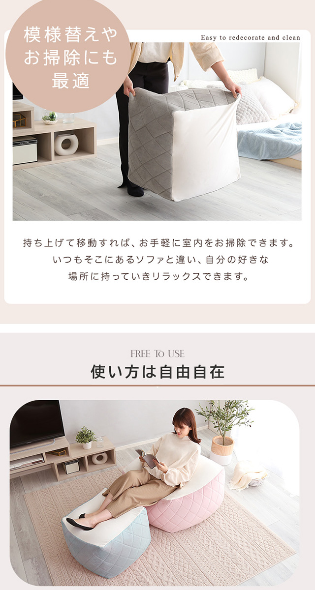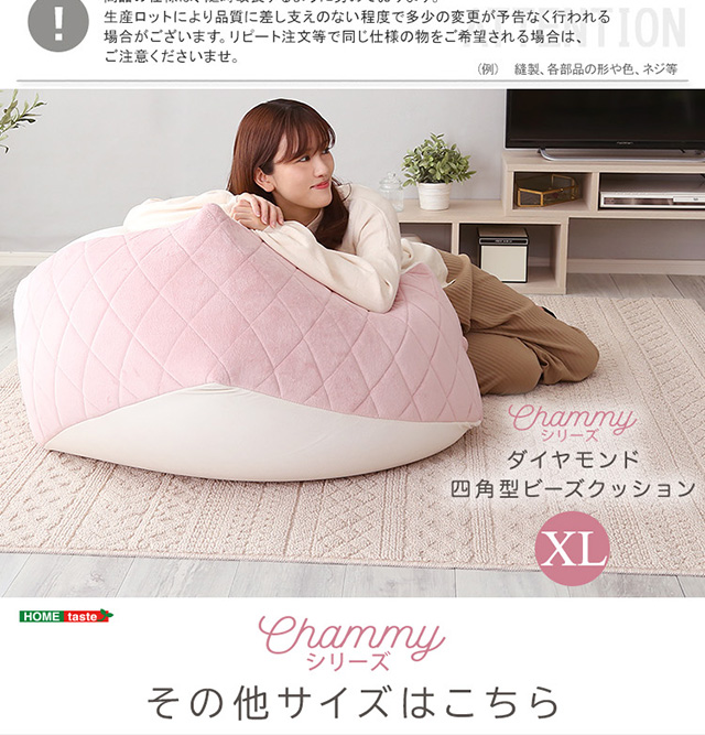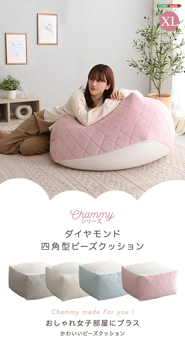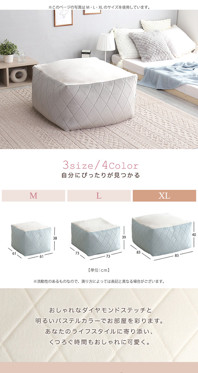 ダイヤモンドステッチが可愛い ビーズクッション XL 【送料無料】 特大 テーブル 四角 かわいい 洗える カバー付き ビーズソファー