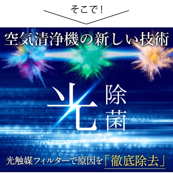 有害因子を本体内部の光触媒フィルター上で分解・除去してキレイな空気でお部屋を満たします。