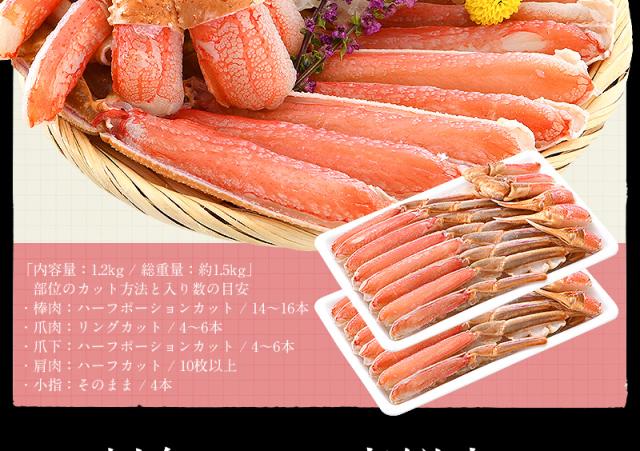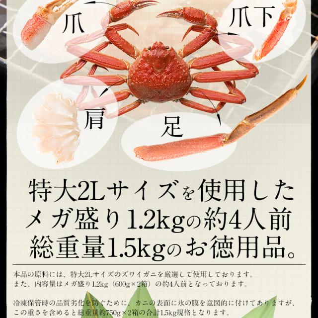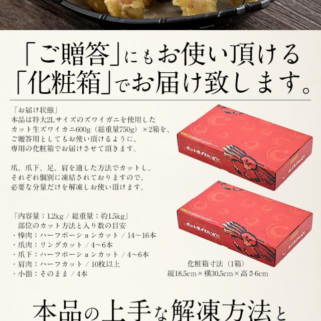 かに カニ 蟹 ズワイガニ お刺身OK 生 カット済み 1.2kg(600g×2箱/総重量1.5kg)ずわい 鍋 しゃぶしゃぶ 刺身 ギフト プレゼント お歳暮