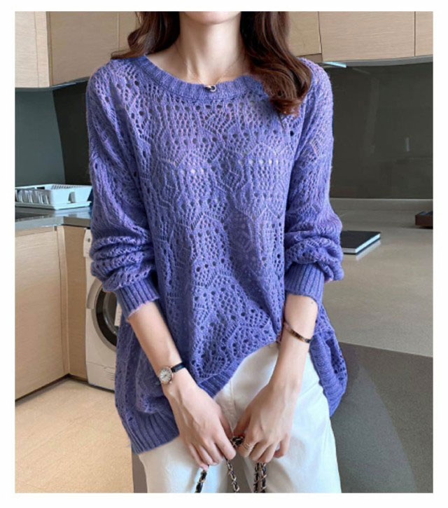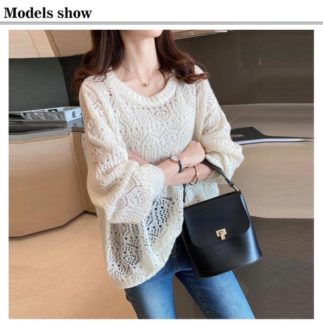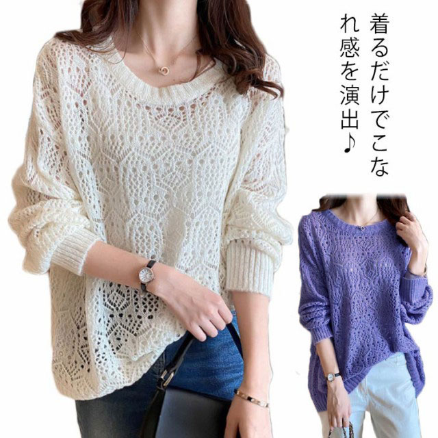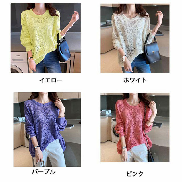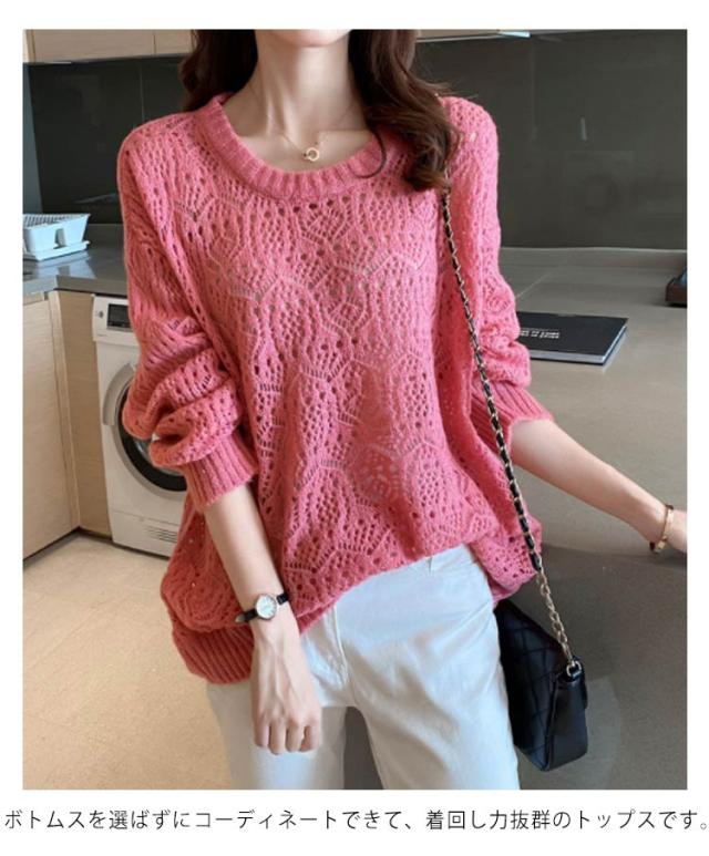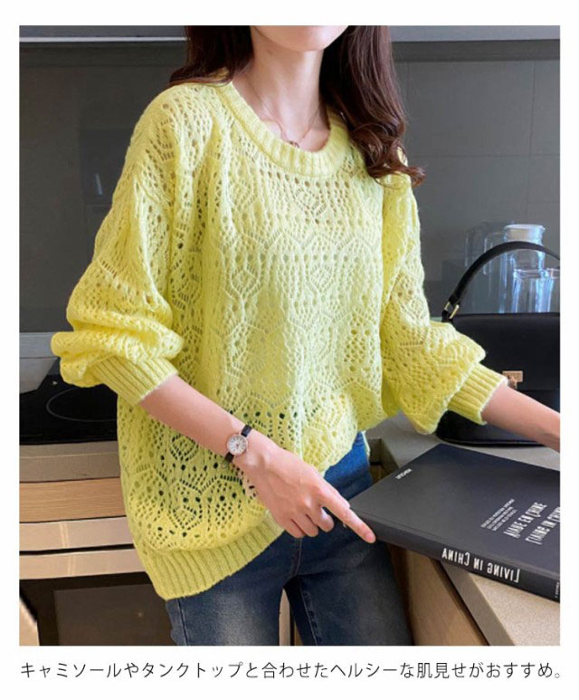 サマーニット レディース 長袖 ニット パフスリーブ トップス 春 ゆったり サマーニット 透かし編み ニット 大人 可愛い 春夏 透かし編みニットライトニット 大きいサイズ シンプル きれいめ 通勤 通学