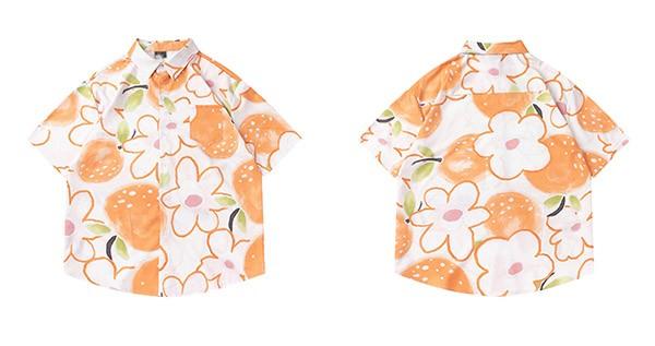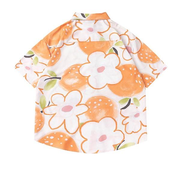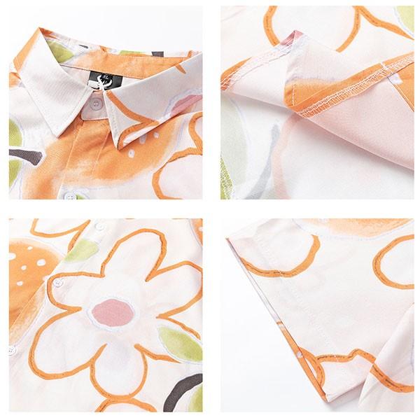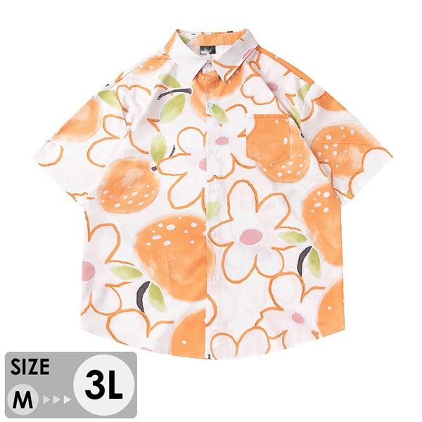 アロハシャツ レディース アロハ柄 半袖 花柄 フルーツ柄 男女兼用 上着 夏 シンプルデザイン ハワイアン 夏物 開襟シャツ 日焼け止め カジュアル オープンカラー レトロ オレンジ 3L