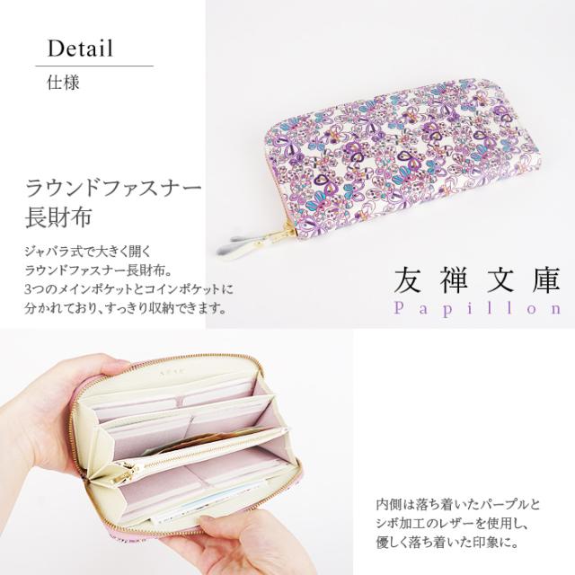 ラウンドファスナー長財布 友禅文庫 Papillon パピヨン 財布 長財布 ファスナー 本革 女性向け プレゼント ギフト 誕生日 クリスマス 母の日 敬老の日 日本製【一粒万倍日】