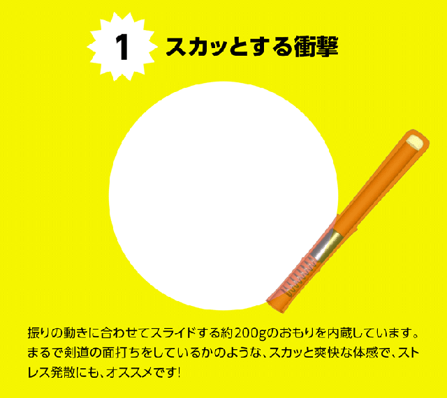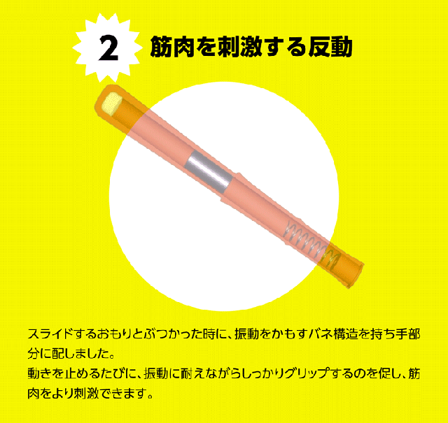 振るたびに重りの衝撃とバネの反動で筋肉にアプローチします。