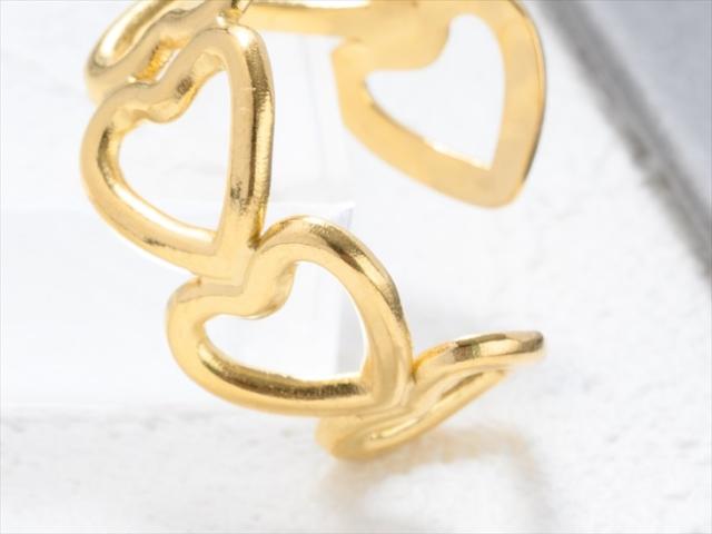 リングパーツ ステンレス 304 6連ハート アクセサリー パーツ ゴールド リング17mm 5個 金属アレルギー対応 フリーサイズ 問屋