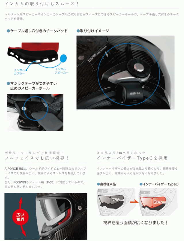 ※A-FORCE RS typeCモデルは従来型インナーバイザーは装着できません。