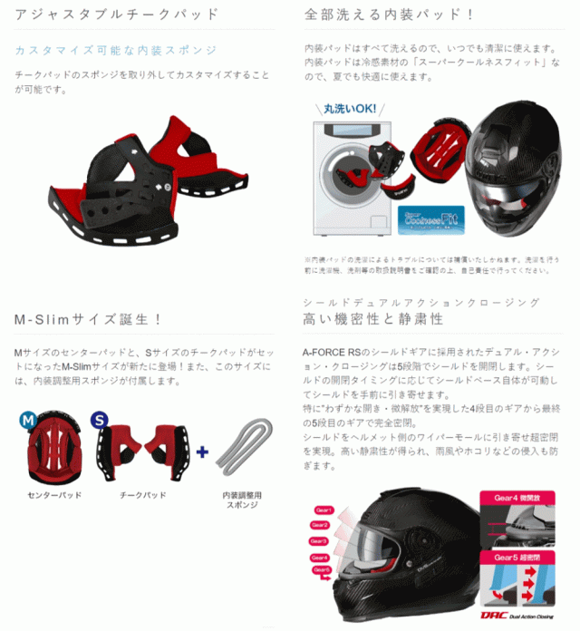 Mサイズのセンターパッドと、SサイズのチークパッドがセットになったM-Slimサイズが新たに登場!また、このサイズには、内装調整用スポンジが付属します。