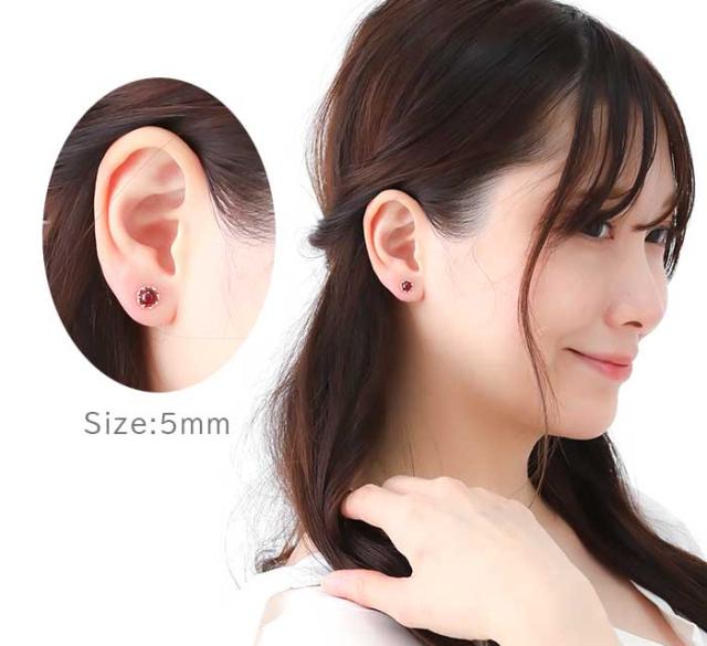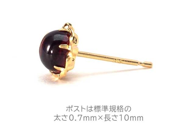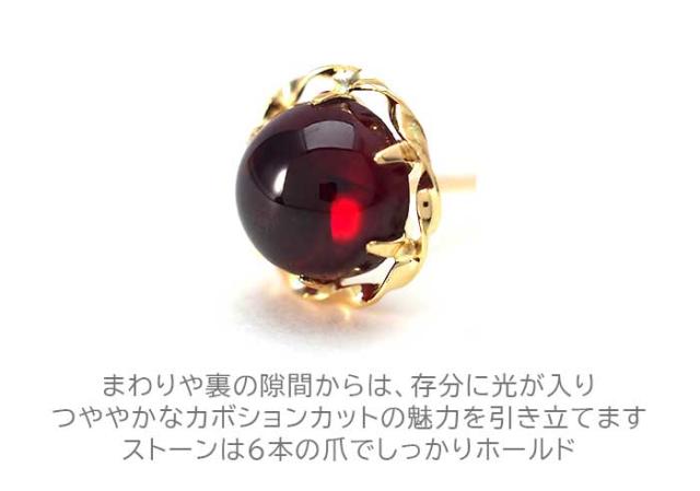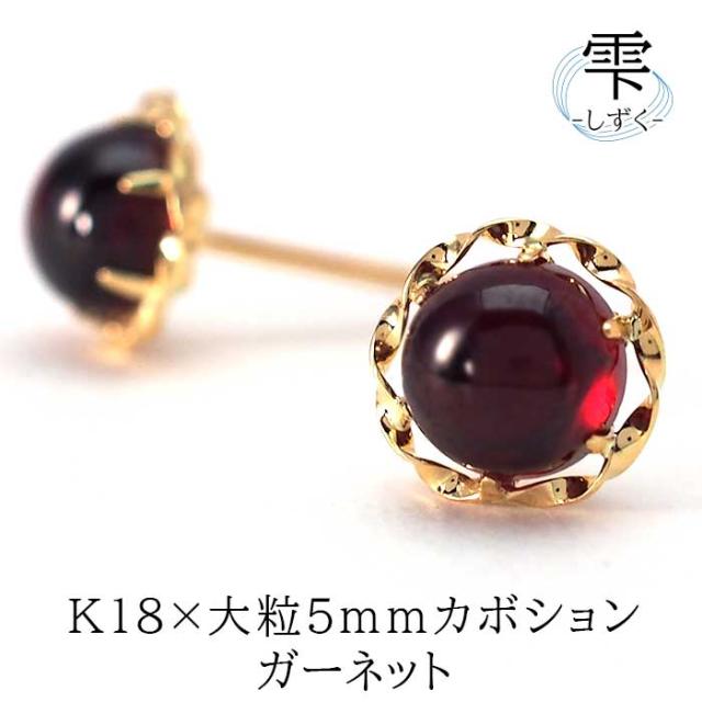 | セカンドピアス カボションカット 大粒 5mm ガーネット K18YG ひと粒ピアス |