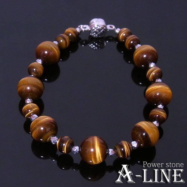 パワーストーン 高級ワイヤーブレスレット SAタイガーアイ10mm&6mm 銀色パーツ 高級ケース付き ppw283