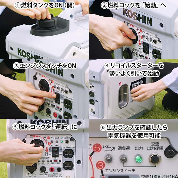 クラス最軽量の高出力インバーター発電機です。発電機のマフラーからでる排気ガスには一酸化炭素が多く含まれておりますので、屋内や、屋外でも換気が悪い場所でのご使用は、一酸化炭素中毒をまねく恐れがあり大変危険です。