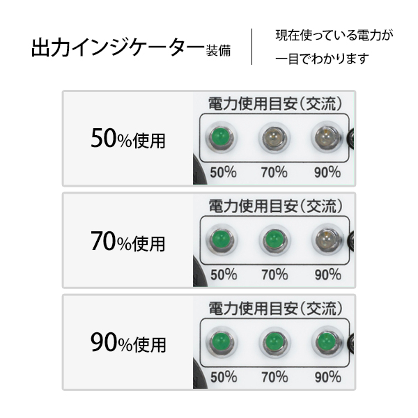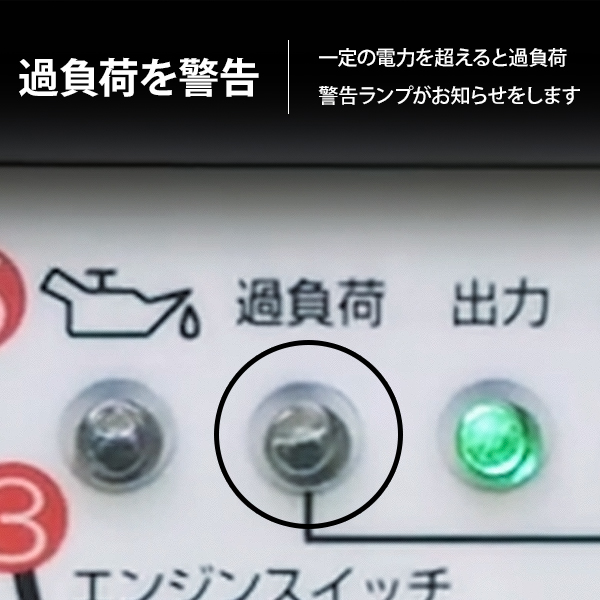 一定の電力を超えると過負荷警告ランプがお知らせをします