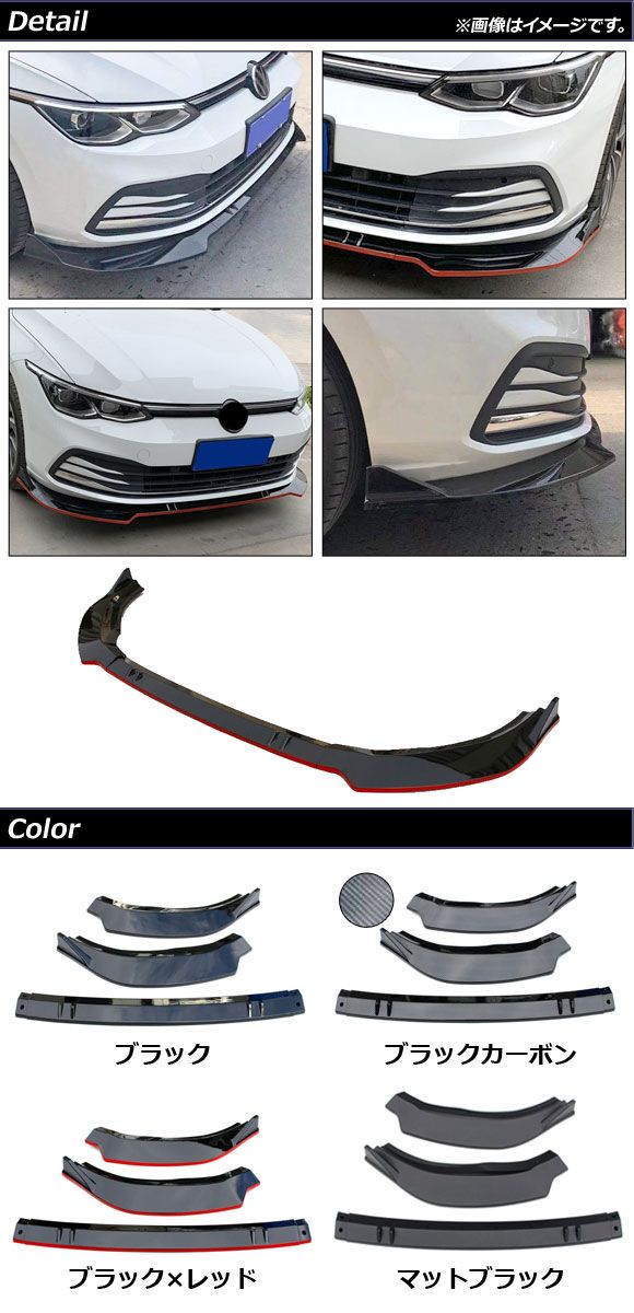 フロントリップスポイラー フォルクスワーゲン ゴルフ8 CDD系 Rライン不可 2021年06月〜 マットブラック ABS製 入数:1セット(3個) AP-XT1617-MBK