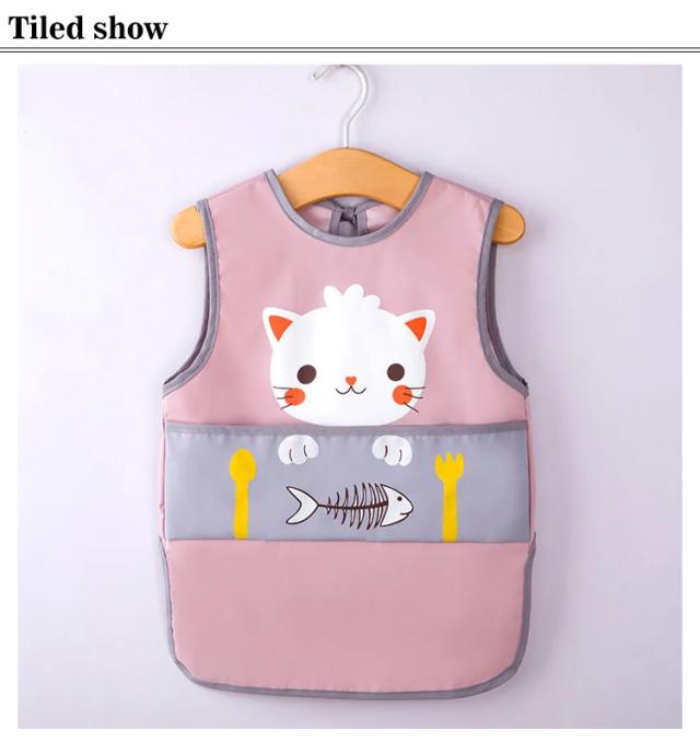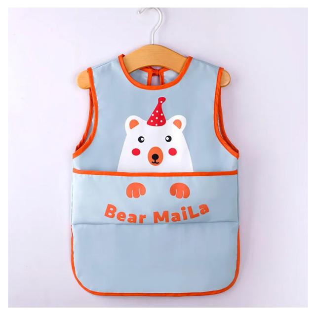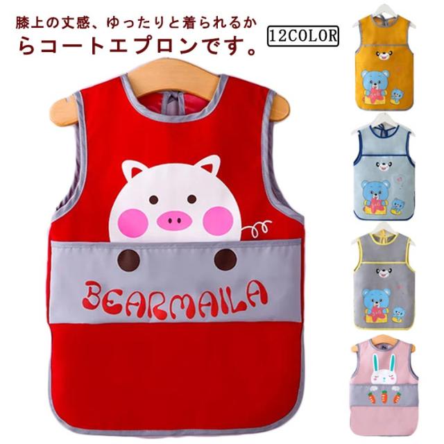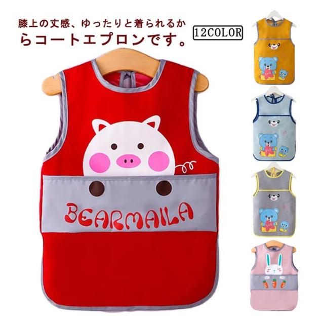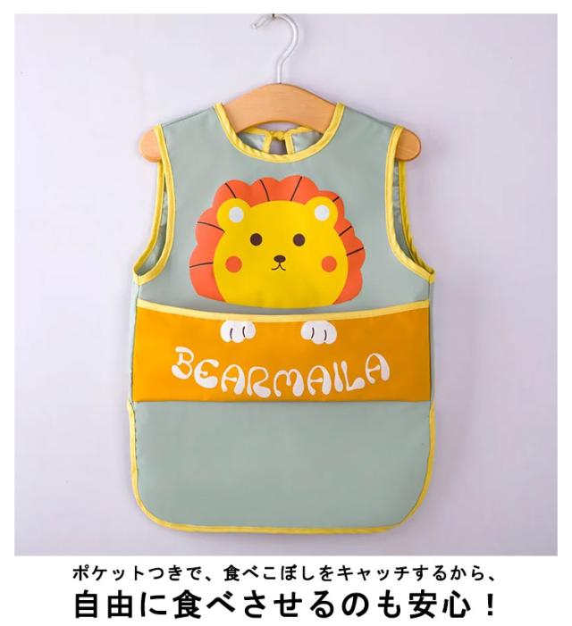 ベビー用エプロン ポケット付き ノースリーブ 食べこぼしガード 袖なしタイプ 防水食事用エプロン 動物 新生児 幼児 スタイ ベビーエプロン 赤ちゃん 男の子 女の子