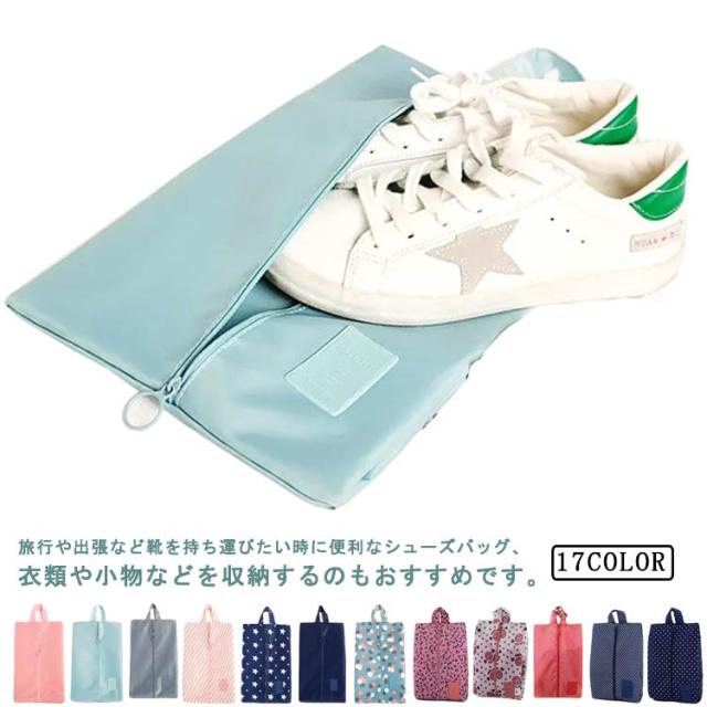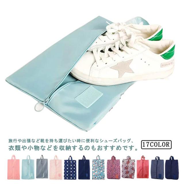 17色 シューズバッグ 防水 シューズケース シューズ袋 シューズ入れ 折り畳み コンパクト ファスナー 防塵 無地 柄 靴入れ袋 靴袋 上履き入れ 大人 学生 高校生 中学生