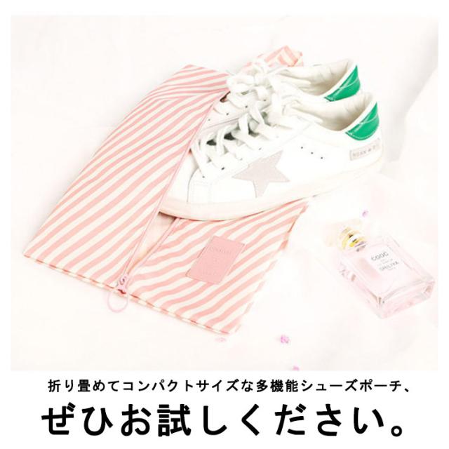 | 旅行や出張など靴を持ち運びたい時に便利なシューズバッグ、衣類や小物などを収納するのもおすすめです。 キルティング生地だから、丈夫で長持ちです。 撥水加工のナイロン生地を使用しているので、多少の雨や汚れに耐えれます。 ファスナー付きなので、出し入れしやすいのも嬉しいです。 荷物が多くかさばりがちな旅行バッグの中身も、これでさっときれいにまとめられます。 折り畳めてコンパクトサイズな多機能シューズポーチ、ぜひお試しください。 | |
