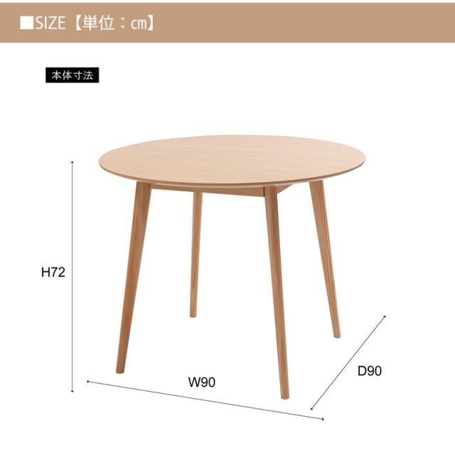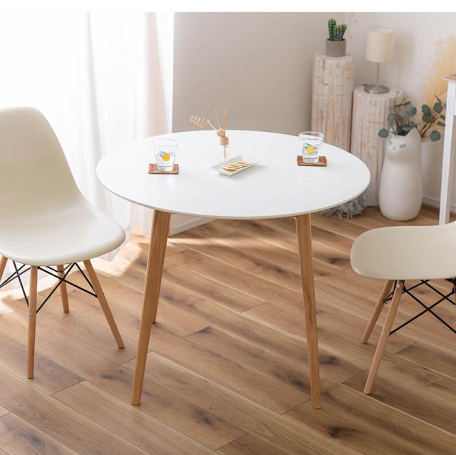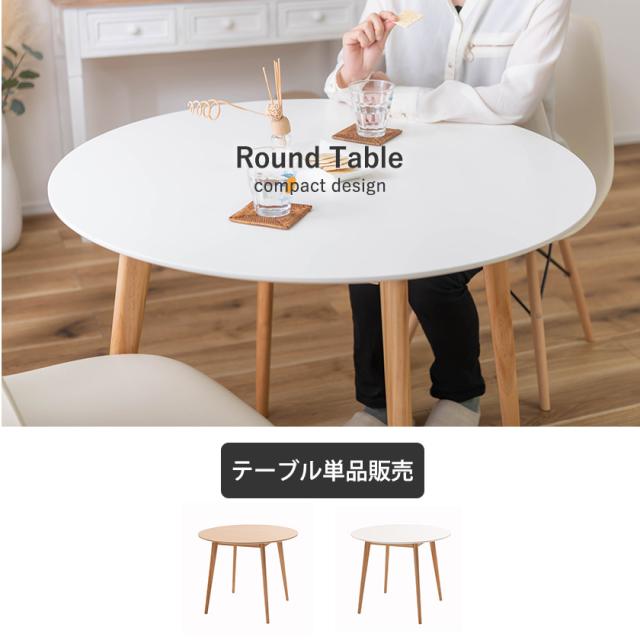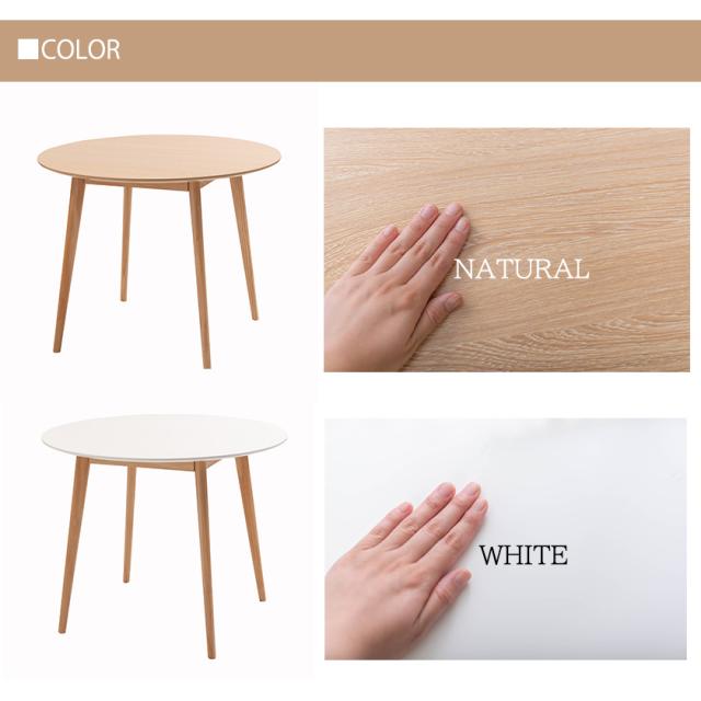 おしゃれ 北欧テイスト ラウンドテーブル W90 【送料無料】 丸型 円形 ダイニングテーブル ナチュラル ホワイト 白 天然木 2人用