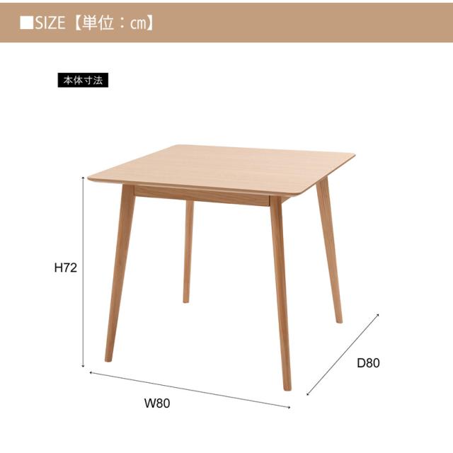 おしゃれ 北欧テイスト スクエアテーブル 幅80 【送料無料】 四角 正方形 ダイニングテーブル ナチュラル ホワイト 白 天然木 2人用