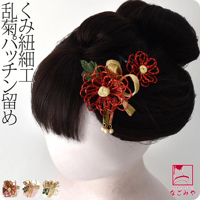 七五三 髪飾り 3歳 通年用 日本製 組紐 乱菊 パッチン留め 2個セット 水引 礼装 子供 女の子 女児10023237