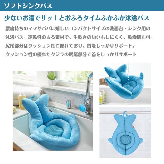 【特徴】腰痛持ちのママやパパに嬉しいコンパクトサイズの洗面台・シンク用の沐浴バス。速乾性のある素材で、生乾きの匂いもしにくく、乾燥機も可。尻尾部分はクッション性に優れており、首をしっかりサポート。