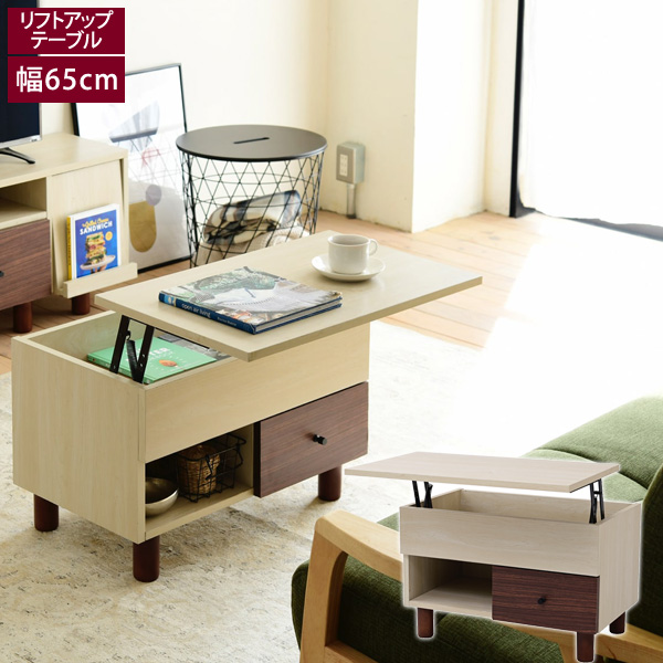 リフトアップテーブル 幅65cm リビングテーブル 昇降式台 引き出し 収納家具 ツートンボックス FMB-0006-JK
