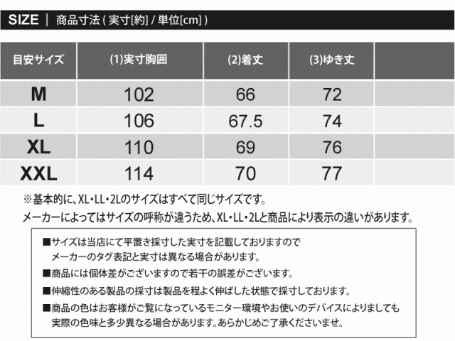 ※基本的に、XL・LL・2Lのサイズはすべて同じサイズです。