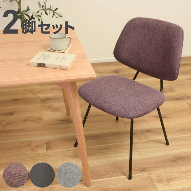 チェア 2脚セット 座面高45cm スチール脚 ファブリック ( レザー調 椅子 セット ダイニングチェア デスクチェア おしゃれ シンプル リビング ダイニング パープル ブラック グレー )