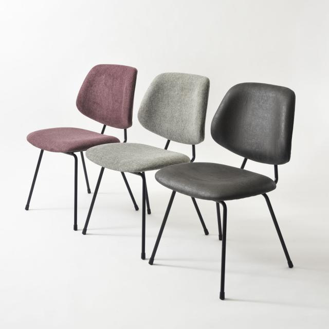 パープルとグレーは座面と背もたれにファブリック素材を使用しており、通気性に優れ一年を通して座り心地が良い仕上がりとなっております。