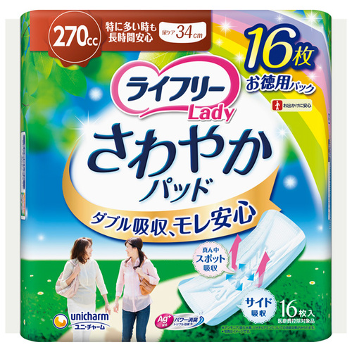 ライフリー さわやかパッド 女性用 270cc 特に多い時も長時間安心用 34cm (16枚入)