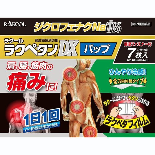 【 第2類医薬品 】 ラクペタンDX パップ (7枚入) 関節痛 肩こり 肩の痛み 腱鞘炎 手首の痛み 肘の痛み筋肉痛、腰痛 打撲 捻挫 湿布 シップ 経皮鎮痛消炎剤 24時間効果 (セルフメディケーション税制対象)
