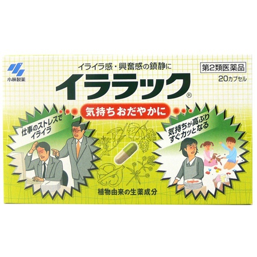●イララックは、高ぶった神経を落ち着かせ、気持ちをおだやかにする医薬品です ●植物由来の生薬エキスがイライラ感や神経の高ぶり(興奮感)を鎮めます ●味が気にならない、服用しやすいカプセル剤です |