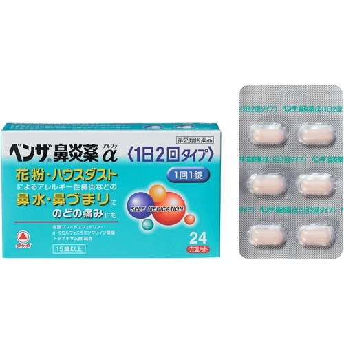 【 指定第2類医薬品 】 ベンザ鼻炎薬α(1日2回タイプ) 24錠 アレルギー性鼻炎、のどの痛みにもよく効く鼻炎薬