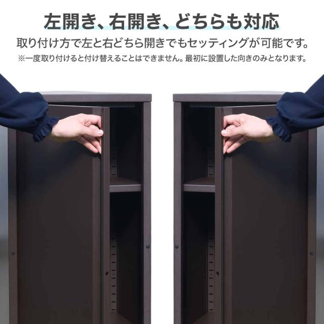 扉受け、扉受けキャップ、マグネットキャップの取り付け方で左と右どちら開きでもセッティングが可能です。