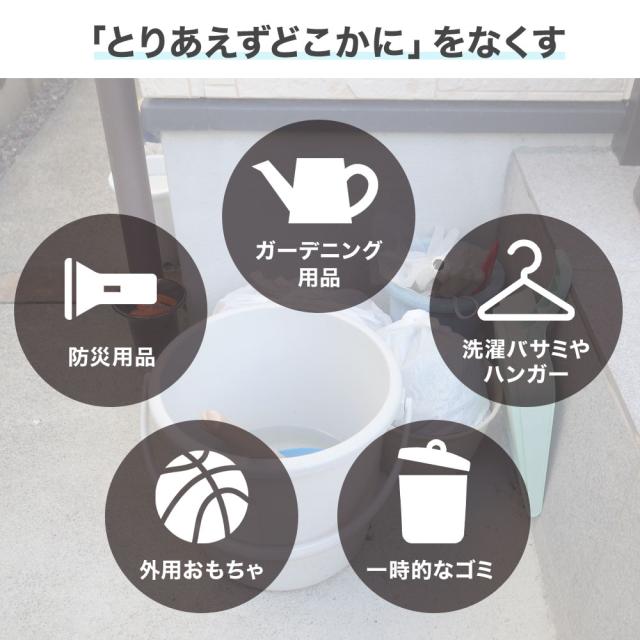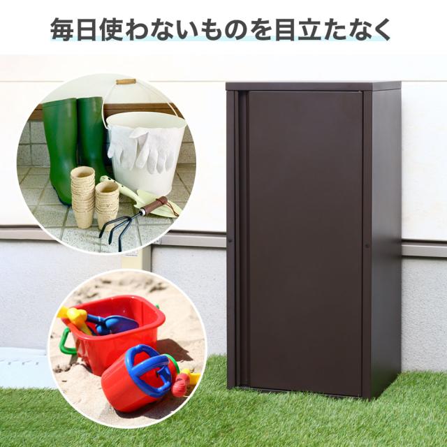 - ベランダではなく雨に濡れないように玄関の下駄箱の横に置くために購入。 最初はコンテナボックスにしようと思いましたがこちらにして正解でした。外で使うバケツ、洗車道具、ホース、噴霧器、灯油タンク等もしっかり入り、すぐ出せます。 掃除がしやすいように平台車にのせました。 組立は女の私で40分ぐらい。 底板がなかなか上手くはまらないな、と思ったら左右の側板がきちんとはまってなく、きっちりやり直すとグラつきもなく完成。マグネットはたしかに弱いですが、あまり関係ないかな。。 とにかく玄関がごちゃごちゃせず見た目もスッキリして良かったです。