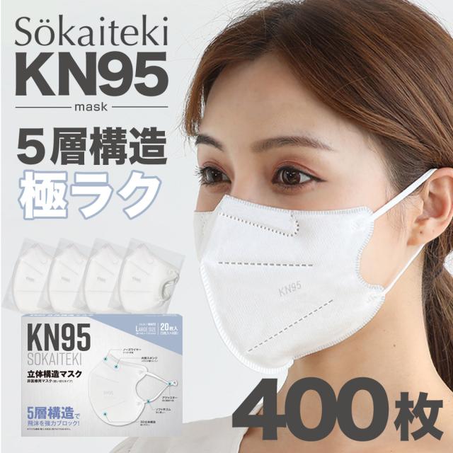 米国N95同等 K N95マスク 400枚 20箱 1カートン KN95 5層 立体 不織布マスク 日本企画 平ゴム メンズ 大きめ やわらか 耳が痛くならない 夏 大人 安い 使い捨てマスク 爽快適 大口注文 まとめ買い 大量購入 マスク 大量