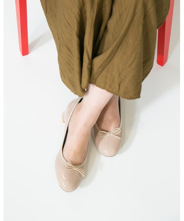 定番のエナメルバレエシューズは、程よい光沢感でカジュアルコーデにぴったり♪