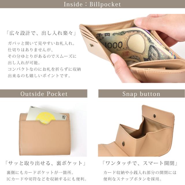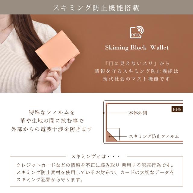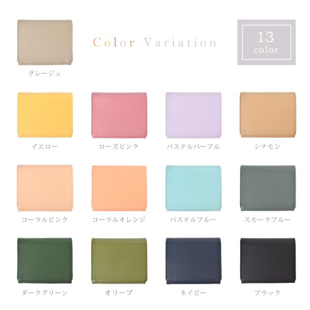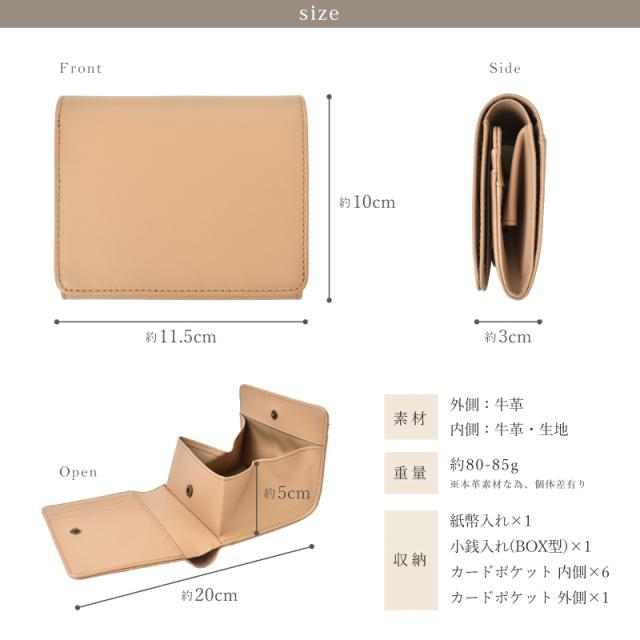 パッと華やぐ大人カラー、本革の上質さを日常に。 選べて嬉しい13色 肌ざわりが良い牛革素材 さらっとした触り心地のなめらかなスムースレザーを使用。 表面に特殊なコーティングを施す事により、雨や汚れに強く、耐久性があります。 本革のマットな質感が上品さを演出します。 ●ガバッと見やすい!BOX型小銭入れ この折り財布の最大の特長は、BOX型の小銭入れです。 高さがあるため小銭がこぼれにくく、大きく開くので見やすく、出し入れもスムーズに。 ●6つのポケットに、スマート収納 外側と同じ牛革を使用し統一感のある仕上がりに。 内側には幅や深さに違いのあるカードポケットが6つあります。 スタンダードなクレジットカードサイズはもちろん大きめのスタンプカードも収納可能です。 ●広々設計で、出し入れ楽々。紙幣入れ(1カ所) ガバッと開いて見やすいお札入れ。仕切りはありませんが、その分ゆとりがあるのでスムーズに出し入れが可能。 コンパクトなのにお札を折らずに収納出来るのも嬉しいポイントです。 ●サッと取り出せる、裏カードポケット 裏側にもカードポケットが一箇所。ICカードや切符などを収納するにも便利。 ●スナップボタン開閉 ワンタッチで、スマート開閉。カード収納や小銭入れ部分の開閉には便利なスナップボタンを採用。 ●スキミング防止機能搭載 『目に見えないスリ』から情報を守るスキミング防止機能は現代社会のマスト機能です。 特殊なフィルムを革や生地の間に挟む事で外部からの電波干渉を防ぎます。 ●シンプルなデザインなので男女問わずお使いいただけます。 ●証明試験を行った牛革を使用しています。 お客様に安心してご購入いただけるよう、MGSABLEでは本革の証明試験を行っております。 ●“革の表情”について、ご購入前にご確認ください 天然のキズやシワなども入っている場合があり、これらは本革ならではの個体差によるものと、 二つとない表情を魅せる革の個性であるため、風合いをお楽しみ頂けると幸いでございます。 ※ひどく目立つものを除いて、ある程度は革の個性としてそのまま出荷・発送を致します。 ※上記のような革の個性による返品・交換は原則お受け致しかねますので、予めご了承下さいませ。 ●ラッピング承ります ご注文の際にラッピング希望『する』をご選択ください。 ※写真はラッピングイメージです。カラー・デザインは男女兼用の物でお包み致します。 |