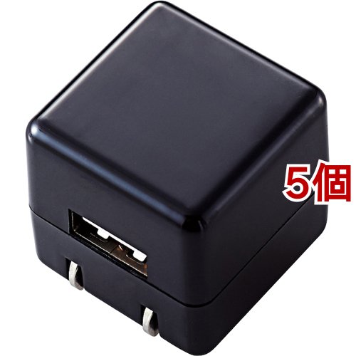 エレコム オーディオプレーヤー充電器 iPod充電器 iPhone充電器 AC キューブ型 USB BK(5個セット)[充電器・バッテリー類]